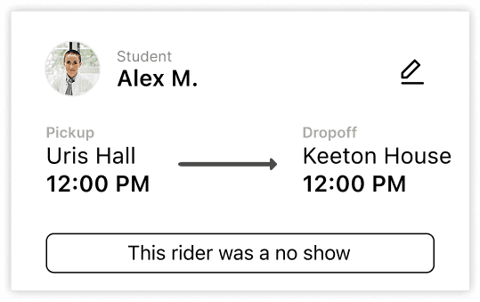 I wanted to create a card which would mark within the history page that the rider was a “no show”. This would be the beginning of my task flow.